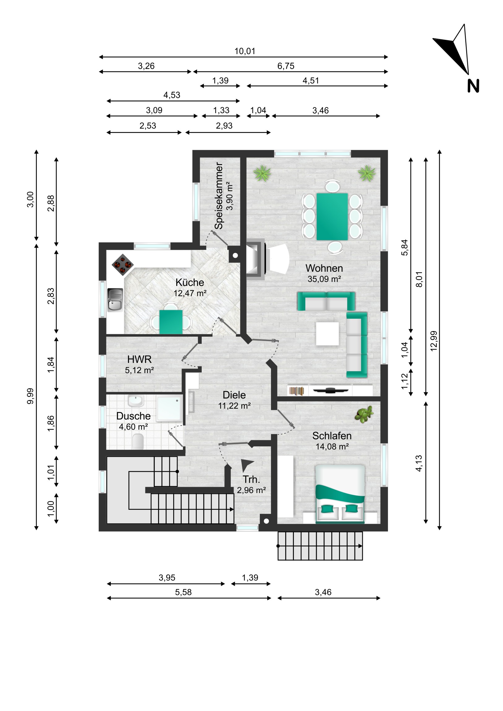 Bodenbeläge: Fliesen (ca. 10 Jahre alt), Granittreppe (4 Jahre alt)