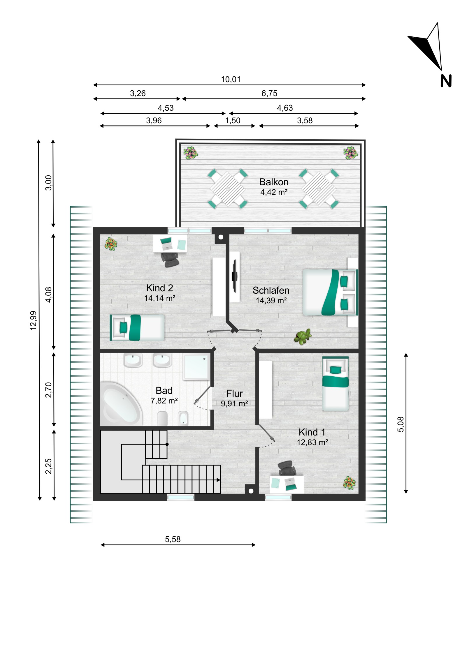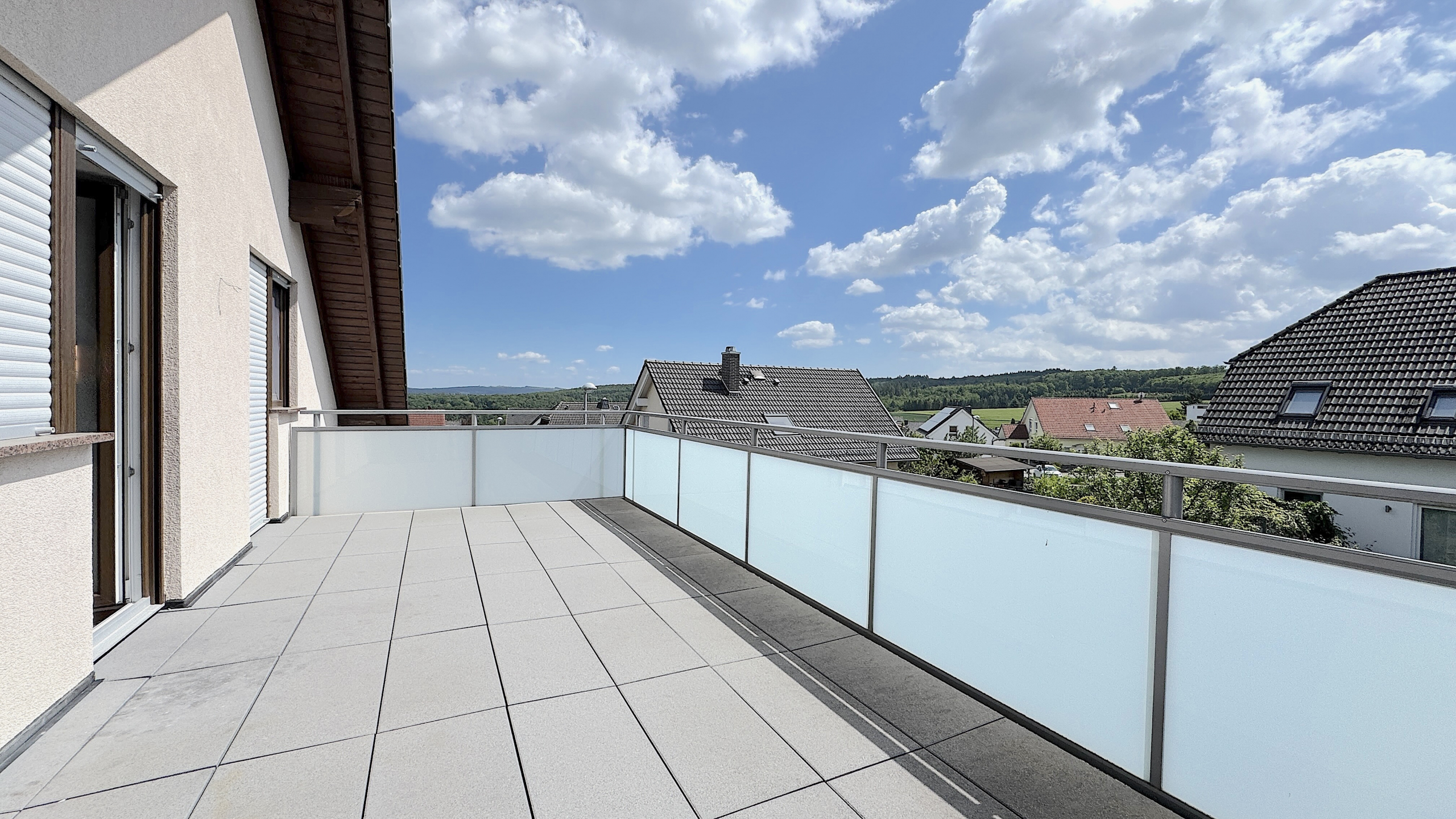 Balkon (20 m²) im Dachgeschoss mit Glasgeländer